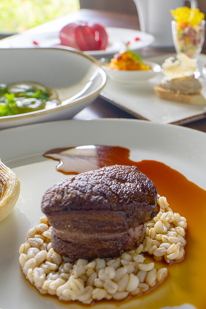 Grilled Ishigaki Beef Tenderloin Pearl Barley Risotto, Port Wine Sauce
